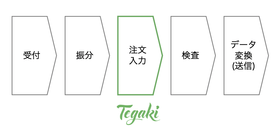 まず「QOSIS」導入企業様の取引先からFAX経由で注文を受信した後、注文書をフォーマットごとに振り分けます。そのあと注文内容のデータ入力を行います。この工程で「Tegaki」を活用しています。